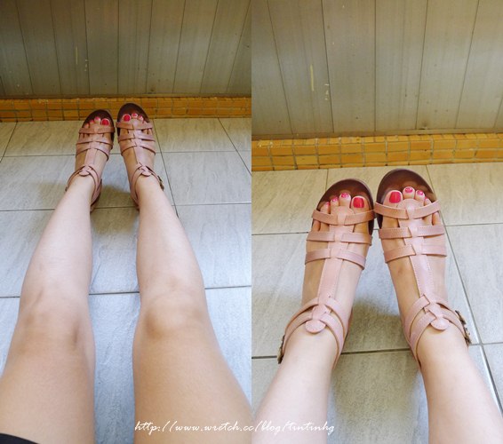 不過有點小小設計不良,後面拉鍊裡面的保護皮太薄容易皺起,而且做不夠高,拉鍊拉到底造成拉鍊頭一直撞我的後腳跟,只好拉鍊不要拉到底才不會一直撞擊…,還有蝴蝶結不是黏死的,可以拆開,所以會滑來滑去…,不過穿起來蠻美的就原諒他了~噗