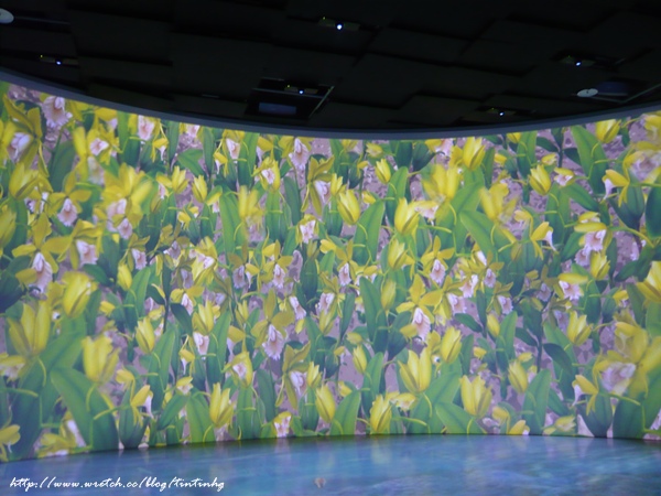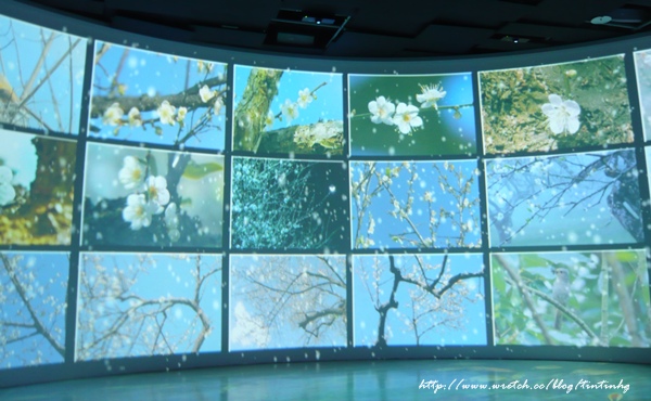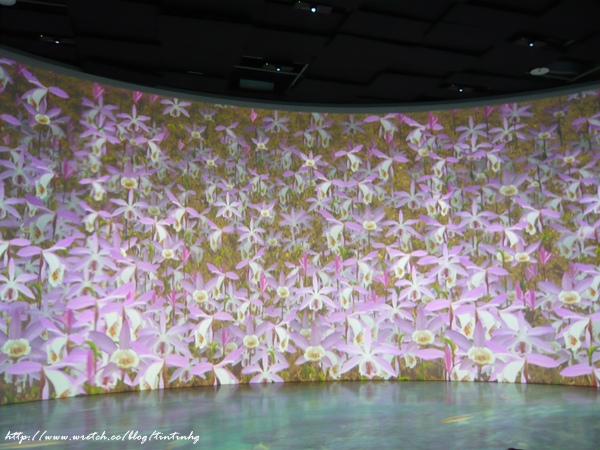 延伸廊道進入夢幻的「影音劇場」,運用生態、地景、花卉及豐富台灣原生及栽培科技與海洋資源之高畫質影音內容,呈現福爾摩沙多元之美,為認識臺灣映象最佳的視聽場所,以身歷其境的表現方式與帶動觀光的概念結合各地的特色,從高山、湖泊到海洋。影片內容結合2D、3D、HD製作手法,於花博期間規劃每週播映「百花寶島」系列影片。