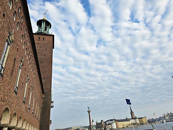 市政廳位於國王島, 由建築師 Rognar Östberg 設計,1911~1923年興建完成,大樓被兩個大型廣場、一個外庭院和一個室內大堂包圍,共由800萬塊、1900萬塊馬賽克磁磚所構建的文藝復興時期王宮建築樣式,106公尺高塔上則可見瑞典國家象徵紋章三王冠 Three Crowns (14世紀時,瑞典、挪威、丹麥皆在瑞典女王瑪格麗特統治下,三個王冠代表三個國家團結象徵),高塔查詢夏季可以付費上去