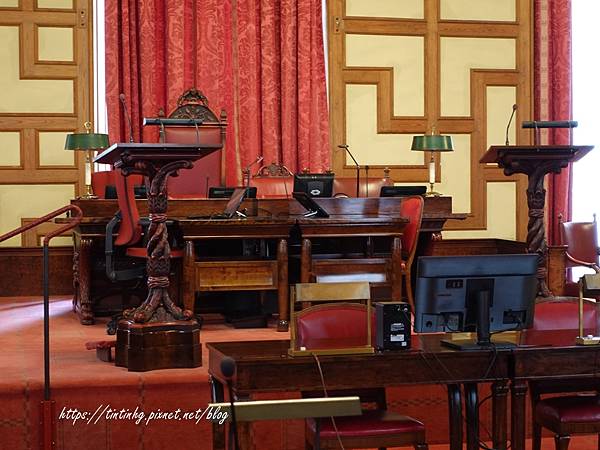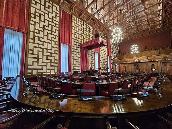 市政廳有政府人員在上班跟議員開議會,所以一定要預約導覽進來,導覽員說我們很幸運,這天來還不用寄物,現在去包包超過A4大小要先寄放才能進來,團進團出,真正幸運的我們去時參觀到後面才有別的團,所以離開自己團太遠走來走去工作人員都沒管我們,人多是不行的..